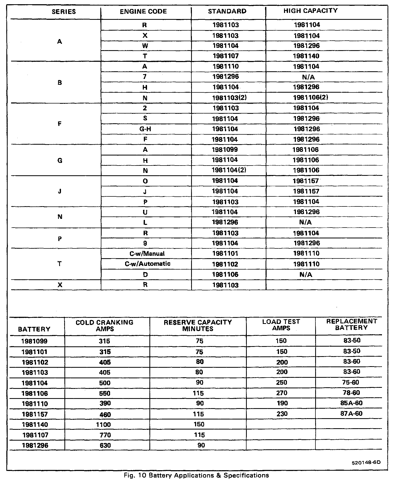 Starting and Charging: Specifications