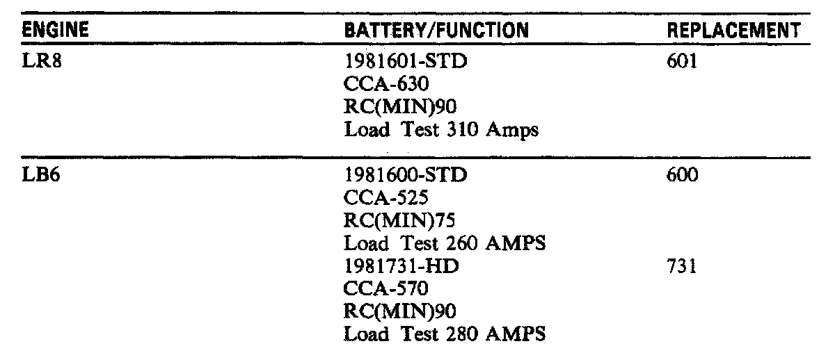 Starting and Charging: Specifications