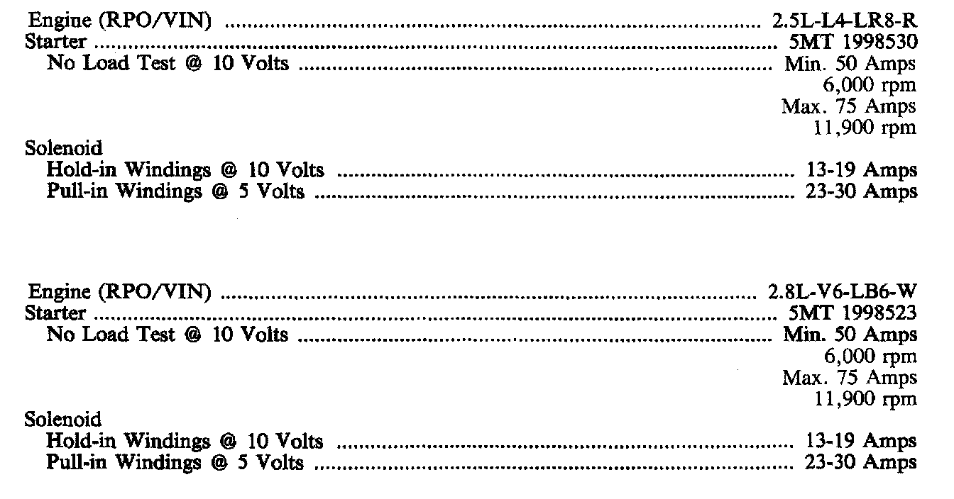 STARTER SPECIFICATIONS