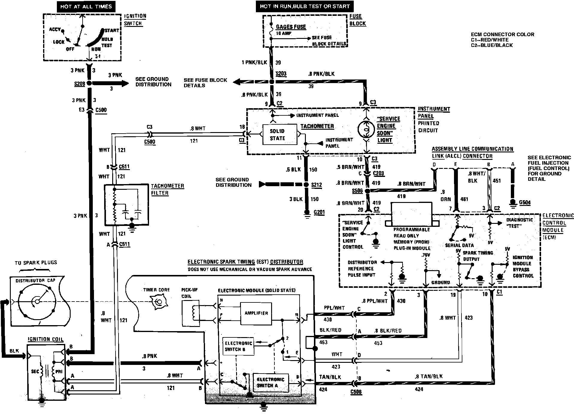 Electronic Fuel Injection Wiring Circuit (Ignition, Service Engine Soon Lamp & Tachometer):