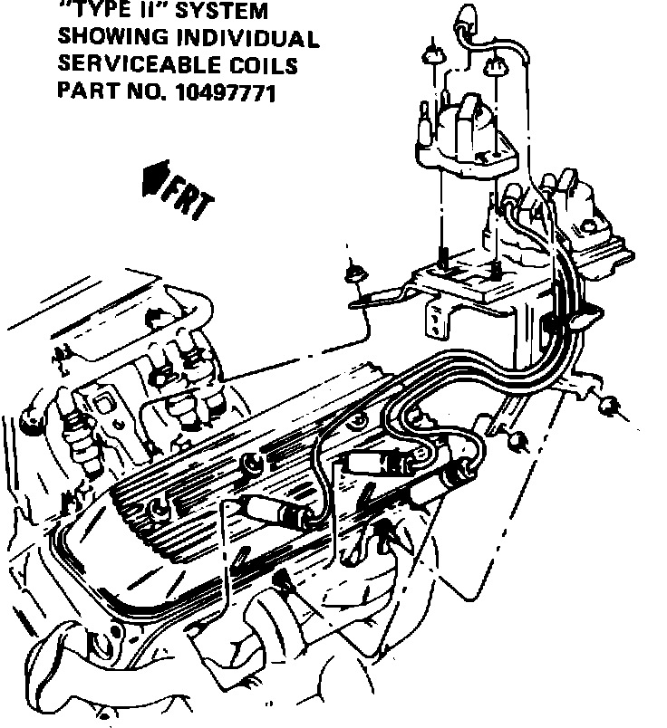"Type II"/"DIS" coils (see Figure 1) should be replaced whenever they measure lower than 5000 ohms or greater than 7000 ohms. They would display 5.0 to 7.0 on the meter. An "open" coil will read "OL" and should be replaced.. This type of coil can be removed from the module and is serviced separately. The correct part number for a "Type II"/"dis" coil is #10497771 and can be found in Group 2.170 in the parts catalog.