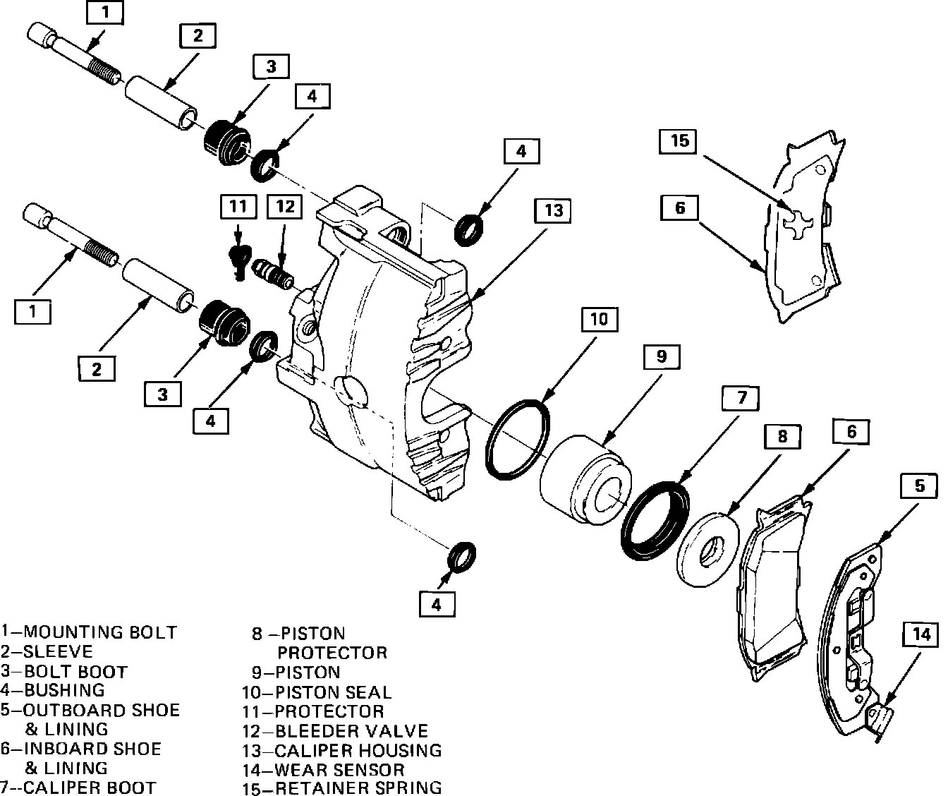 FIGURE 1 - CALIPER ASSEMBLY DISASSEMBLED VIEW: