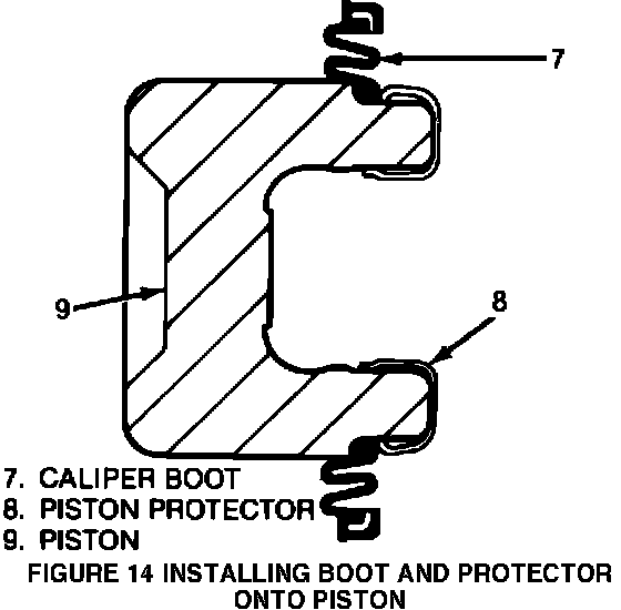 FIGURE 14 - INSTALLING BOOT AND PROTECTOR ONTO PISTON: