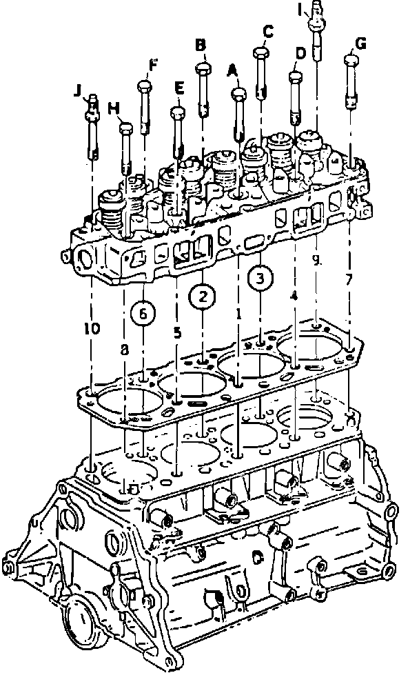The head bolts most susceptible to this condition are the center three located closest to the exhaust manifold, i.e. bolts # 2, # 3, and # 6, see FIGURE 1. If one of these three bolts is broken, replace all 3 bolts with new ones per the Application Table.