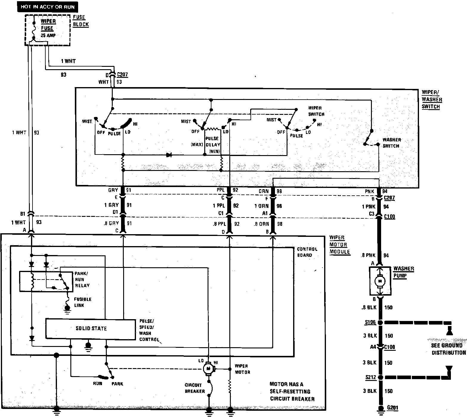 Intermittent Wiper/Washer Wiring Circuit. With Pulse: