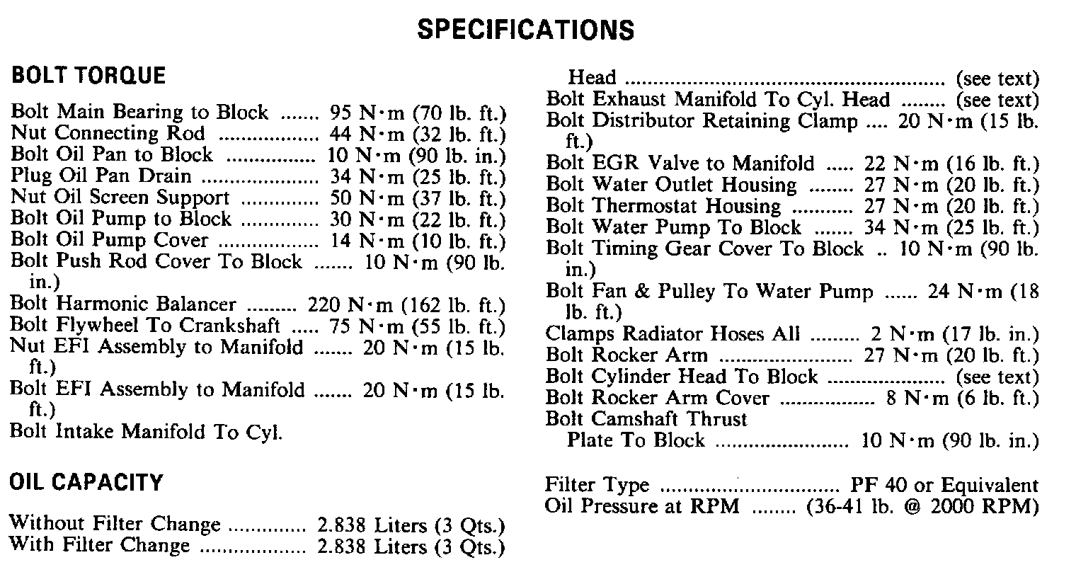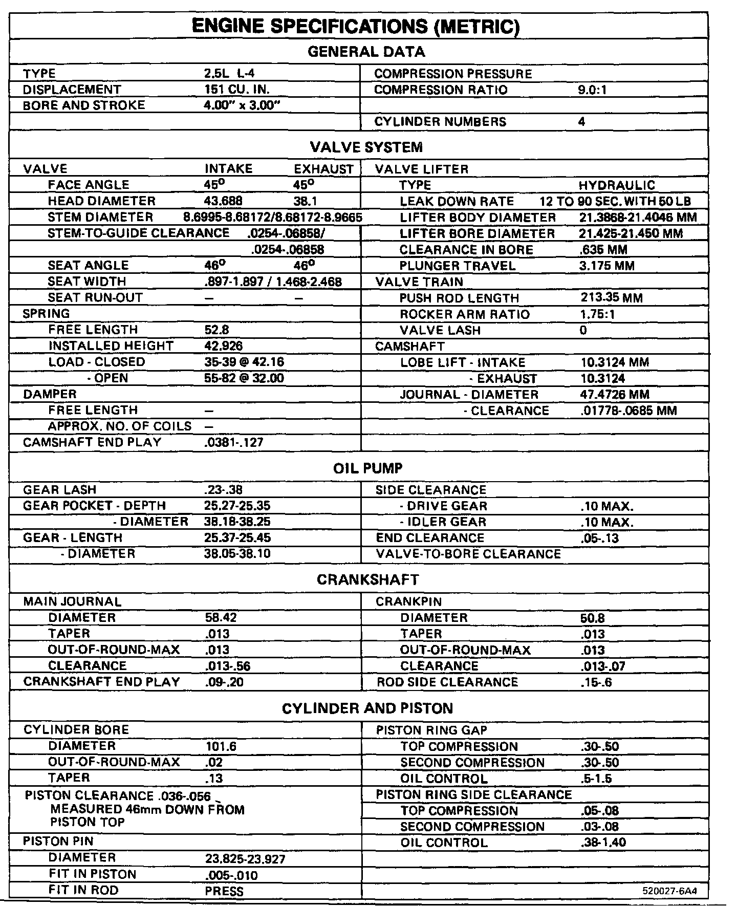 Engine Specifications (METRIC):