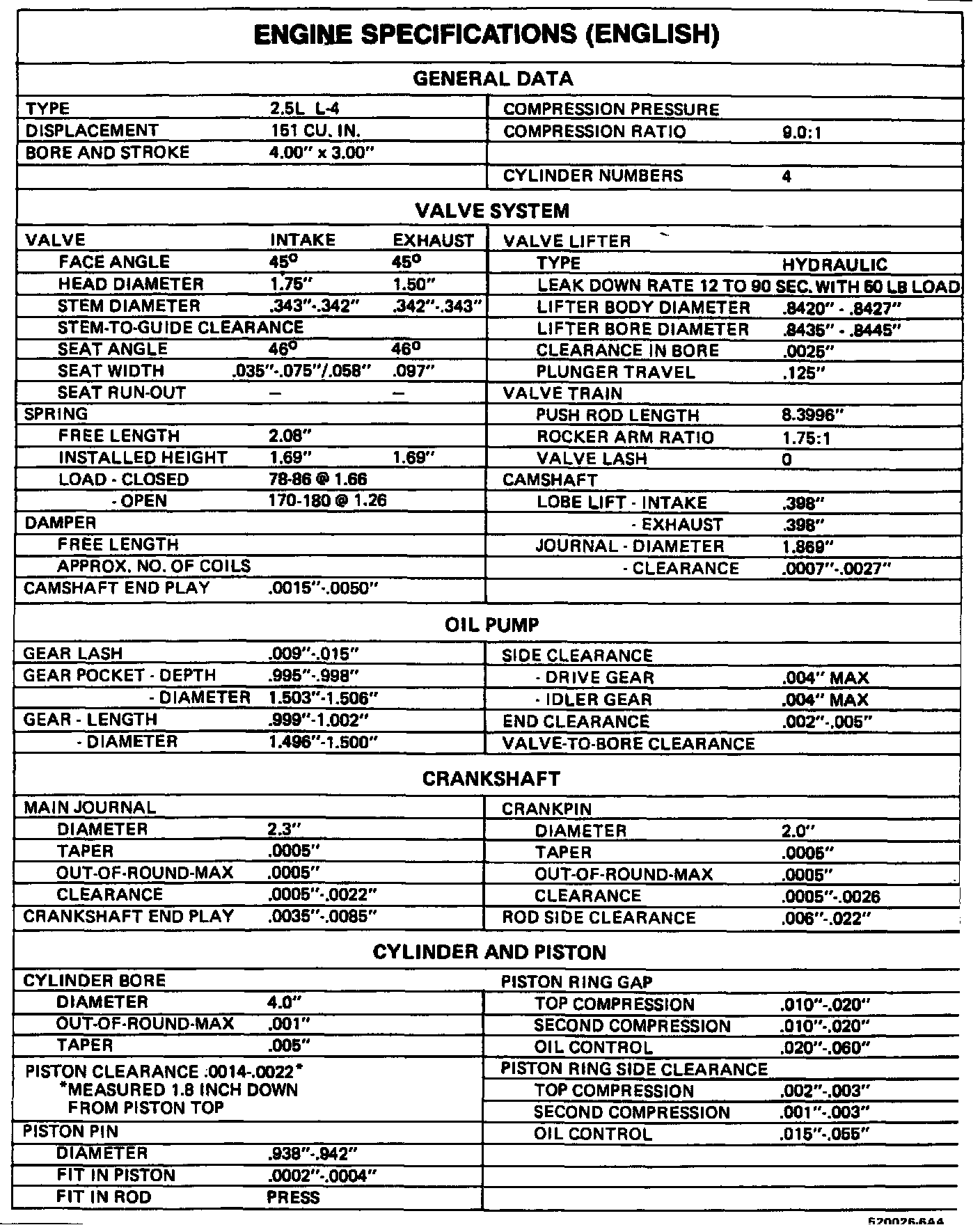 Firebird L4-151 2.5L
