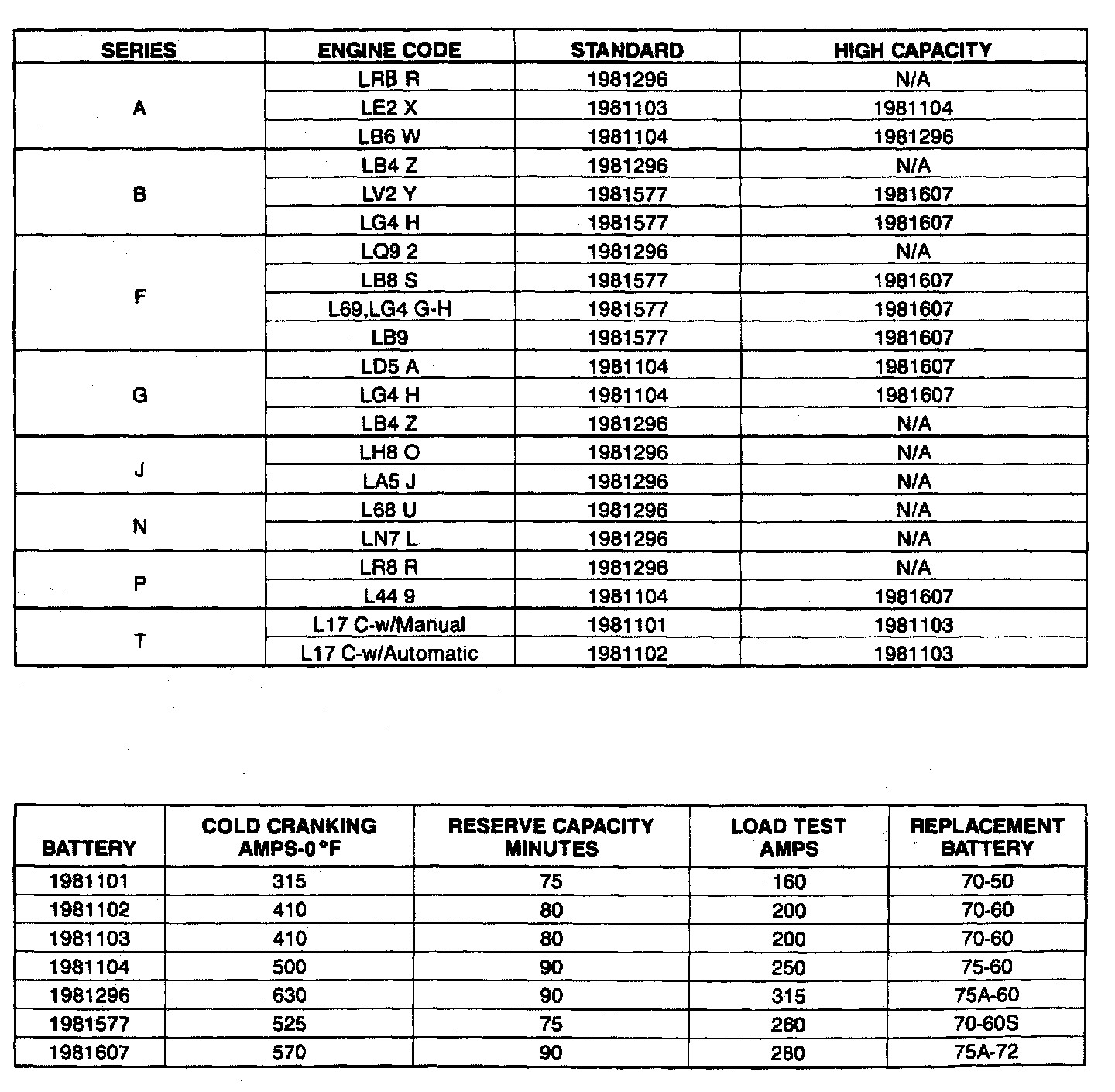 Starting and Charging: Specifications