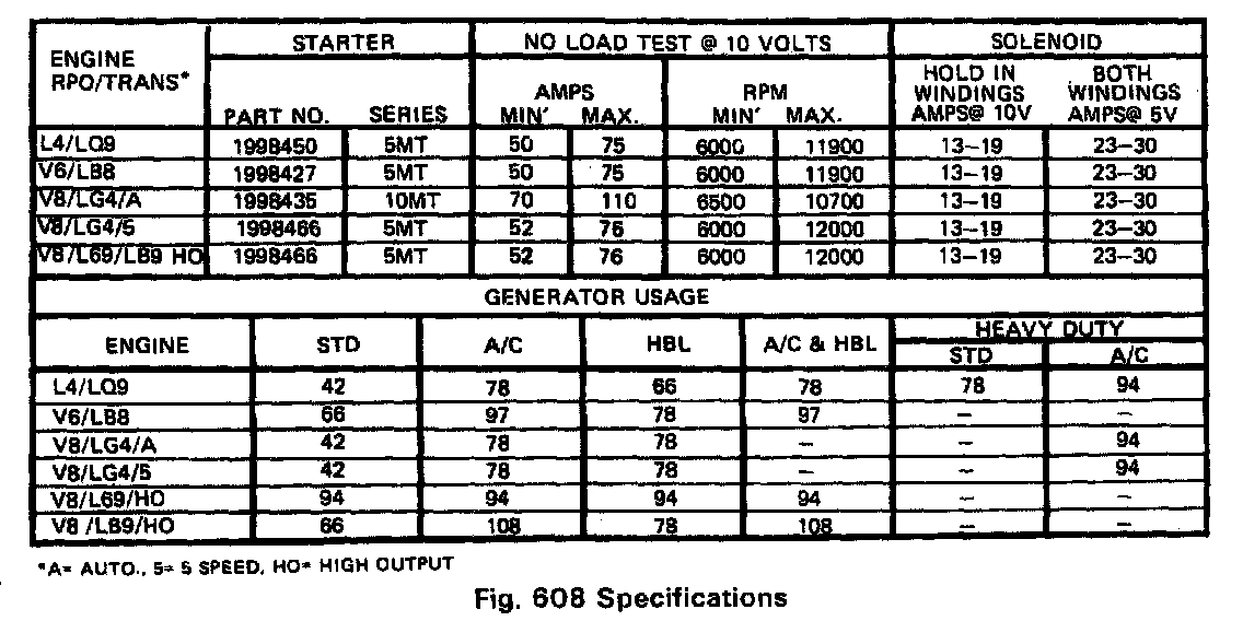 AND STARTER SPECIFICATIONS