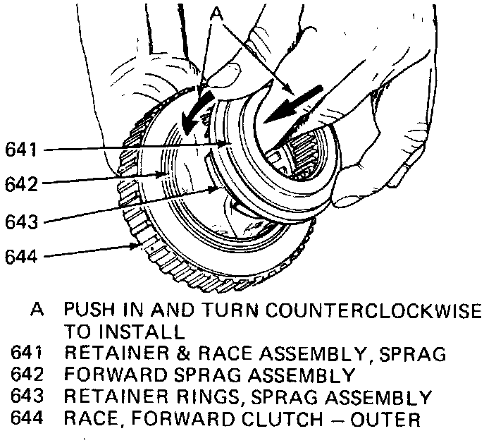 2. Remove sprag assembly wear plate, then the forward clutch retainer and race assembly.