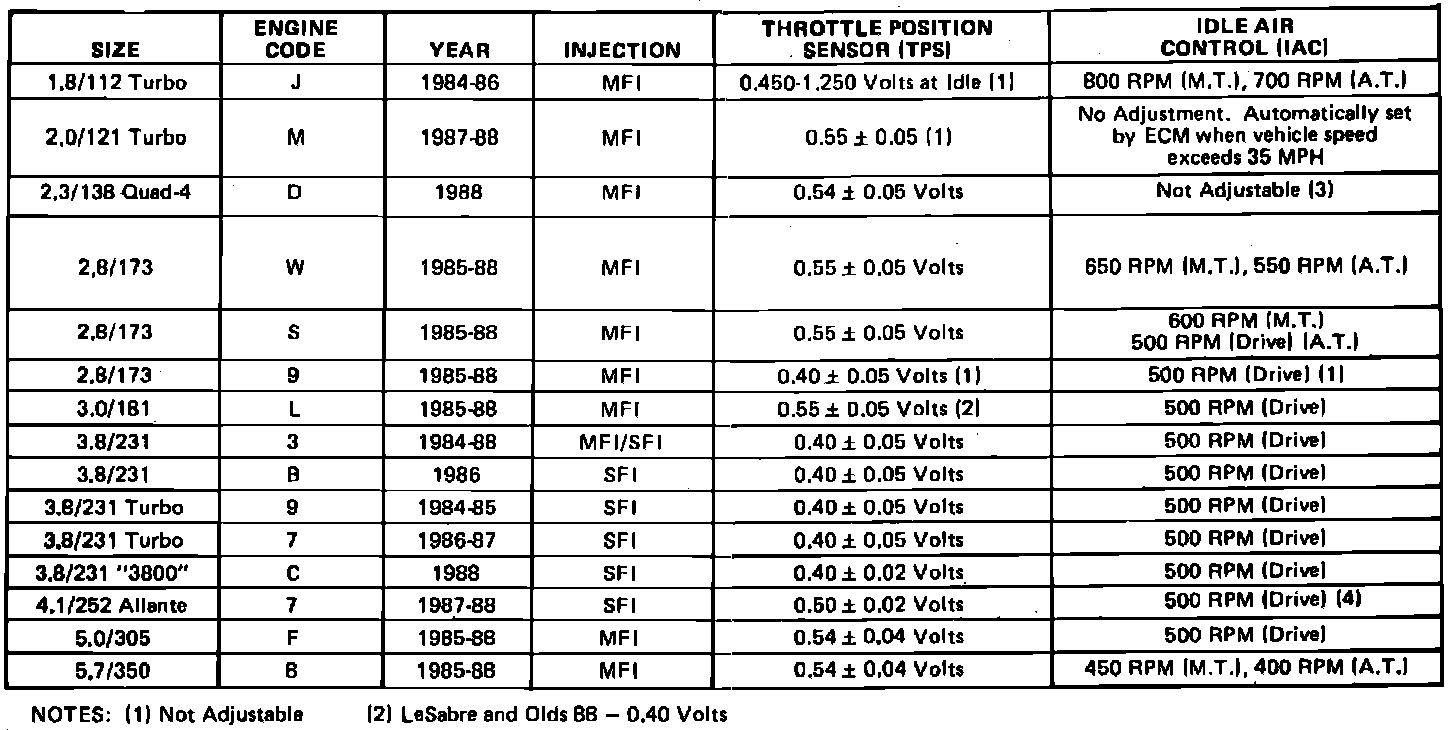 Throttle Position Sensor and IAC Specifications: