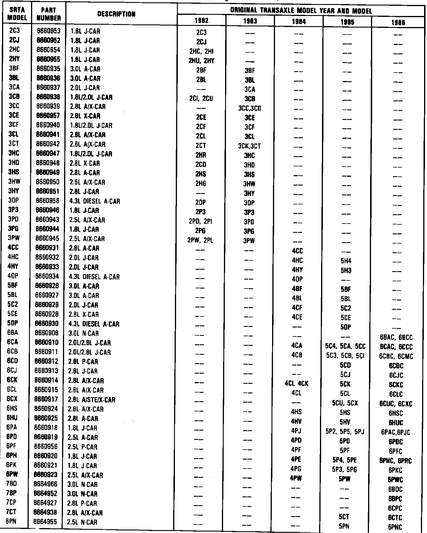 FIGURE 1 - 1982-1986 THM 125C SRTA MODEL REPLACEMENT CHART: