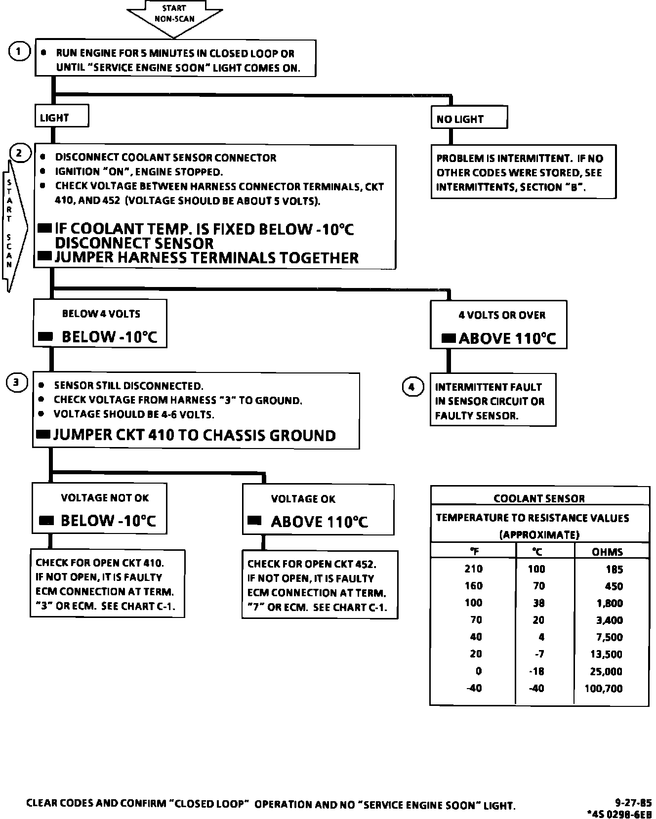 COOLANT SENSOR CIRCUIT CHART (SIGNAL VOLTAGE LOW):