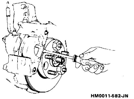 c. Hold outer shoe against caliper with suitable clamp or by applying moderate pressure on brake pedal.