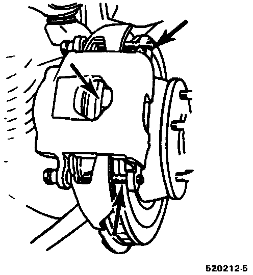 Remove one of the front wheels and inspect the brake disc, caliper and linings. Do not get any oil or grease on the linings. It is recommended that all linings be replaced in sets when worn or damaged.