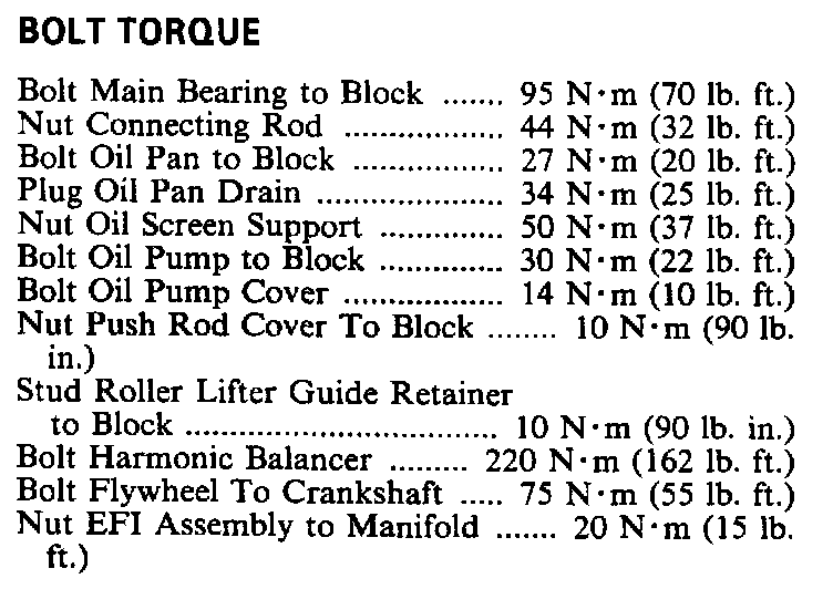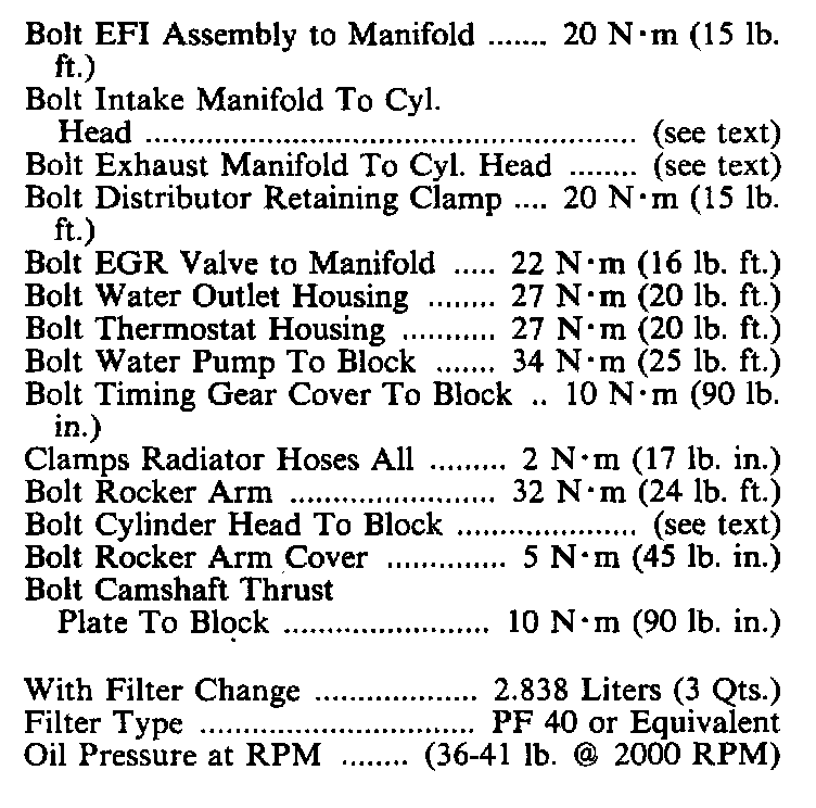 Torque Specifications: