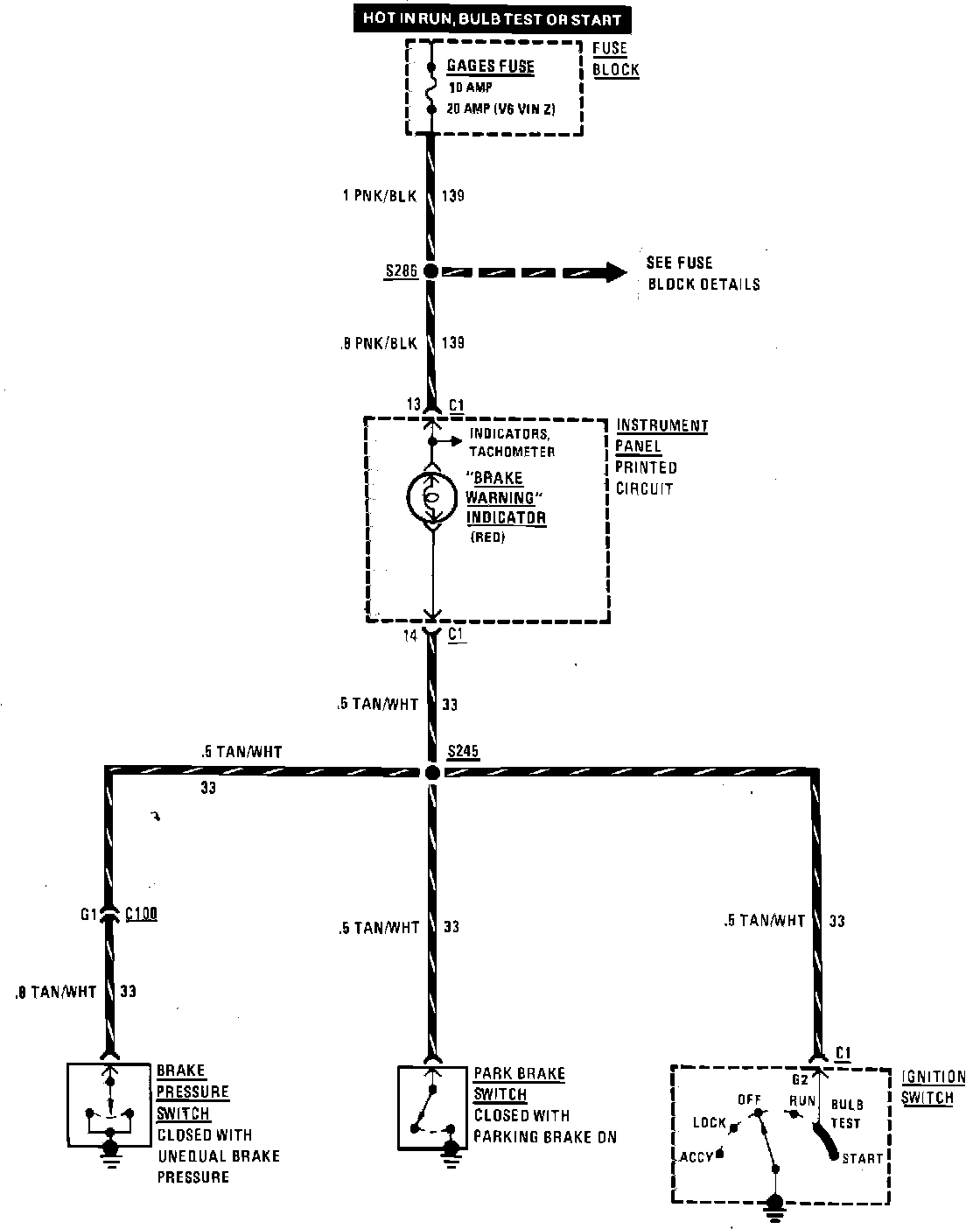 Brake Warning System Wiring Circuit: