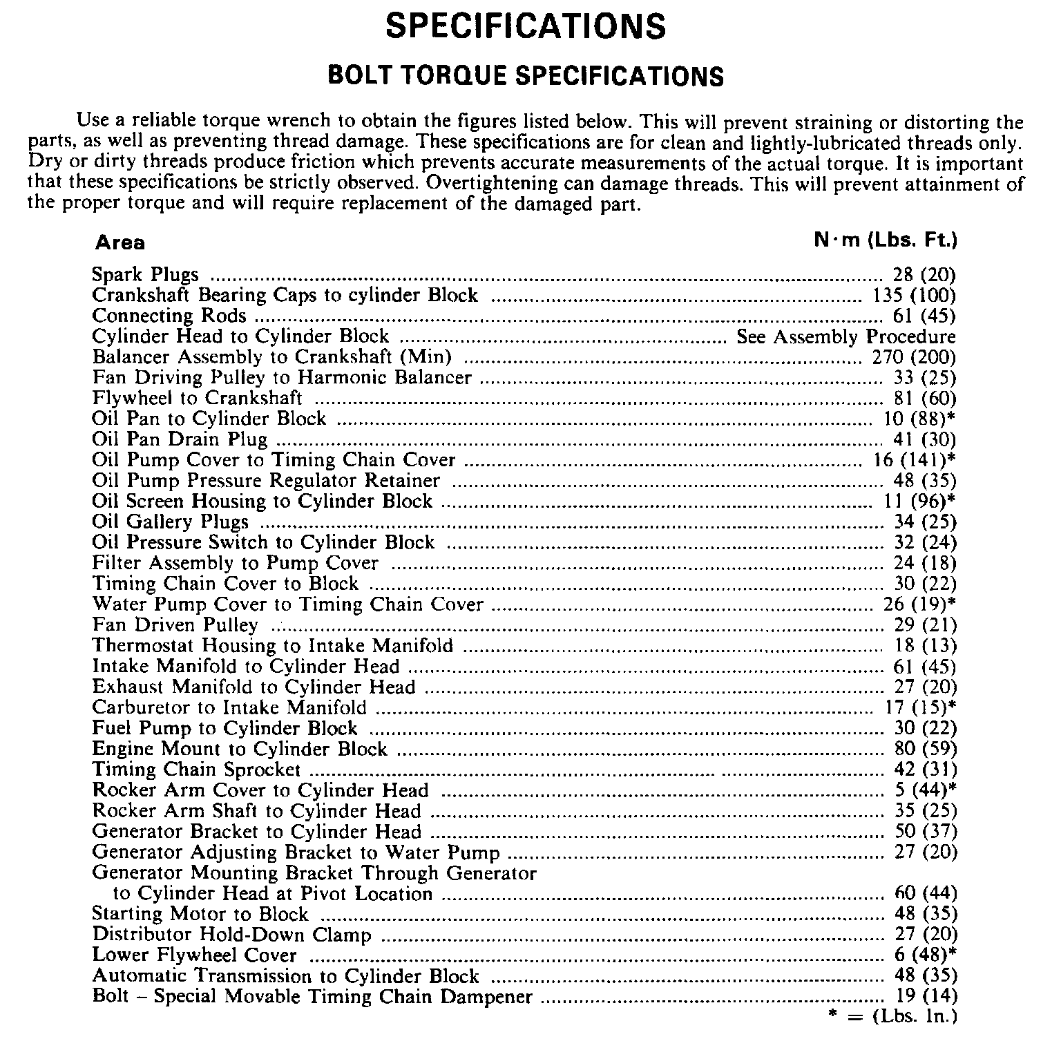 Torque Specifications: