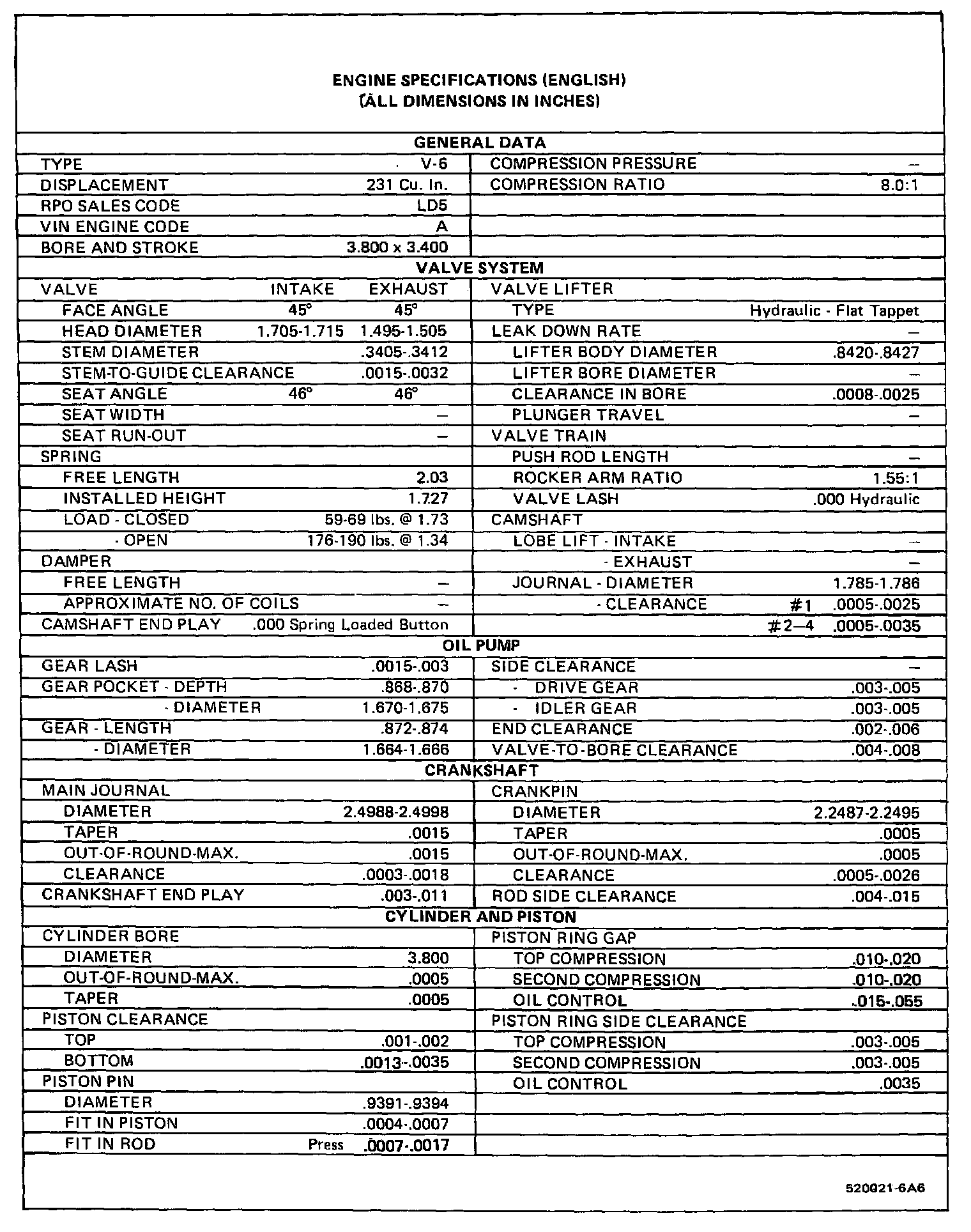 Engine Specifications: