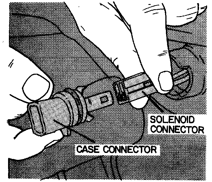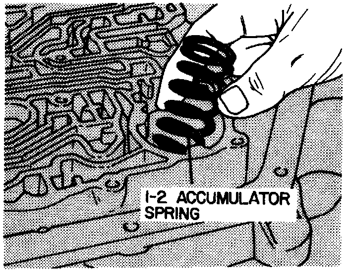 3. Remove 1-2 accumulator spring, see first image, fifth check ball located in case, see second image, and electrical connector, see third and fourth image.