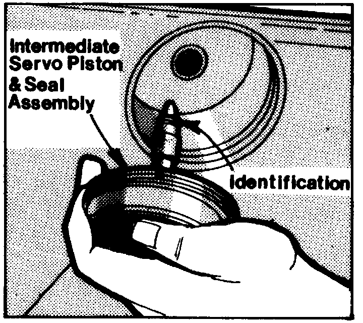 a. Pace tool J-25014-2 into intermediate servo bore and retain with intermediate servo cover retaining ring. Align ring gap with case slot, see image.