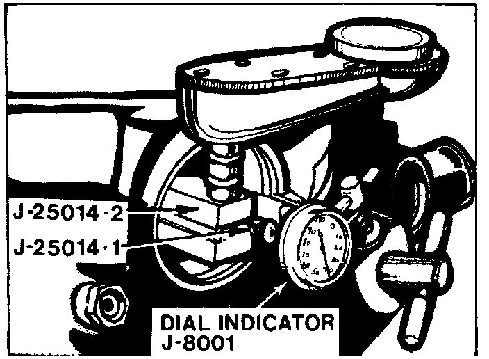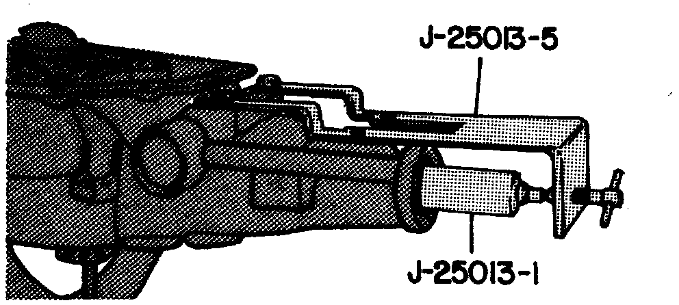 h. Remove dial indicator, clamp assembly, J-24773 and J-25022. Do not remove J-25013-5 or J-25013-1.