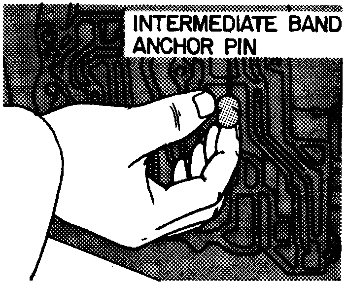 13. Remove intermediate band assembly see first image, and band anchor pin, see second image.