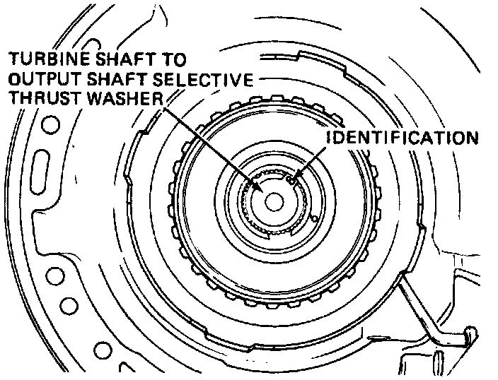 14. Remove output shaft to turbine shaft front selective washer, see image. This washer may be stuck on end of turbine shaft.