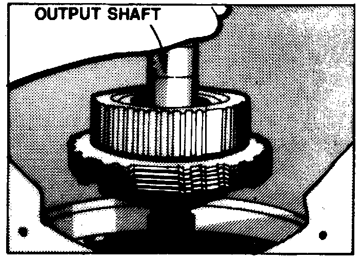 a. Loosen tool J-25013-5 adjusting screw on output shaft and push shaft downward, see image.