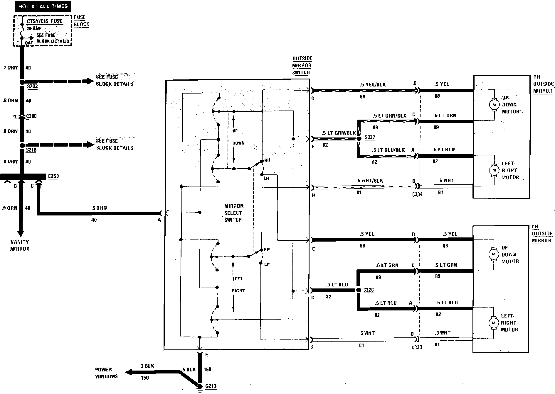 Power Mirrors Wiring Circuit: