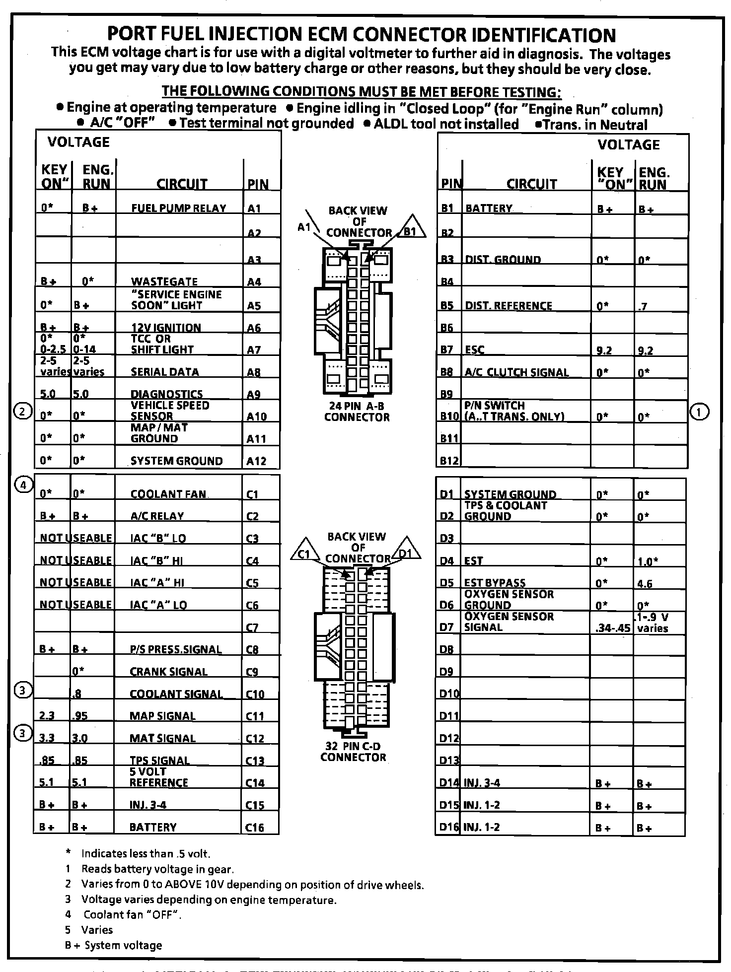 ECM Connector Terminal End View: