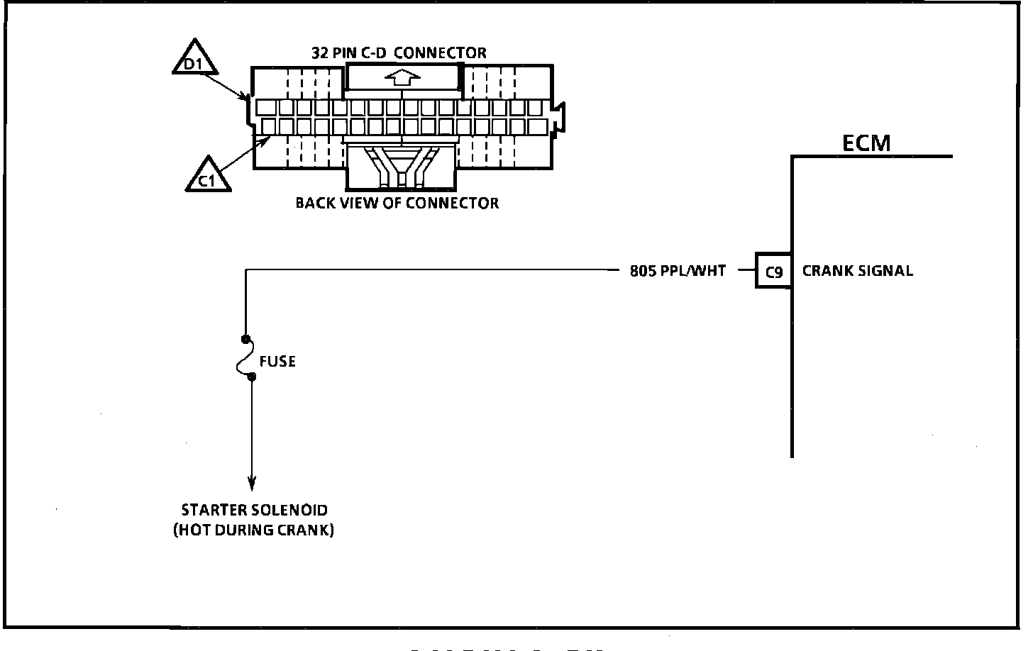 1. Checks for normal (cranking) voltage to terminal "C9" of ECM. Test light should be "ON" during cranking.