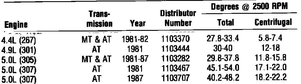 DISTRIBUTOR TIMING ADVANCE: