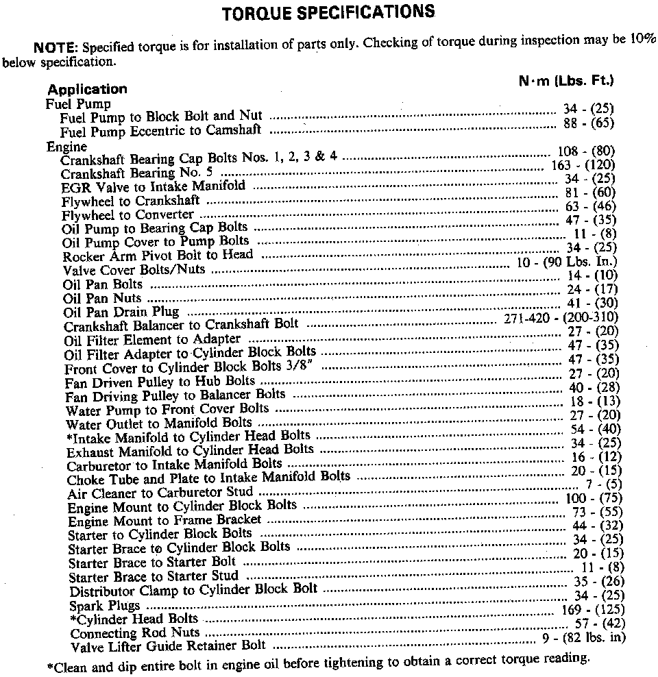 Fastener Tightening Specifications - Engine