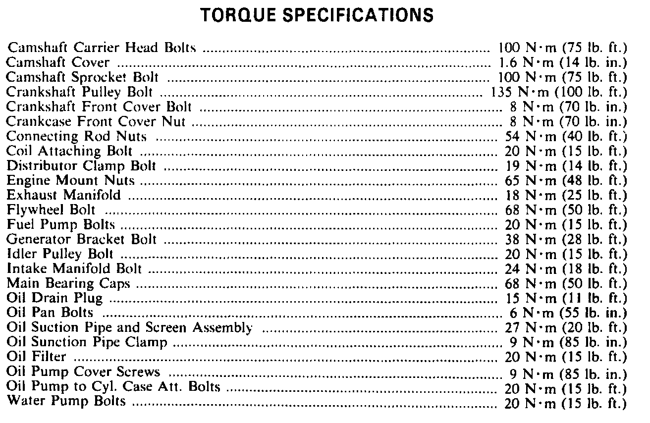 Torque Specifications: