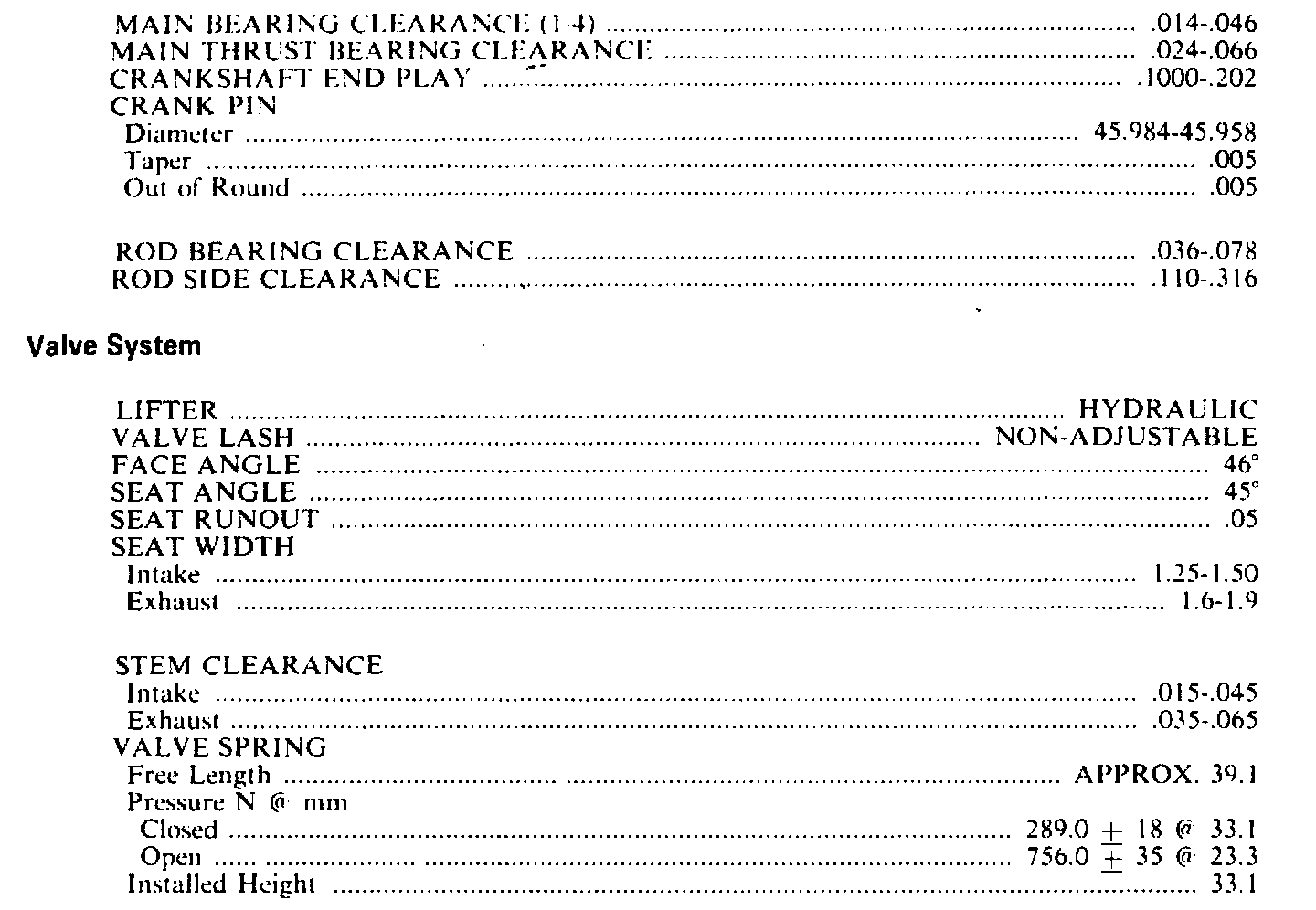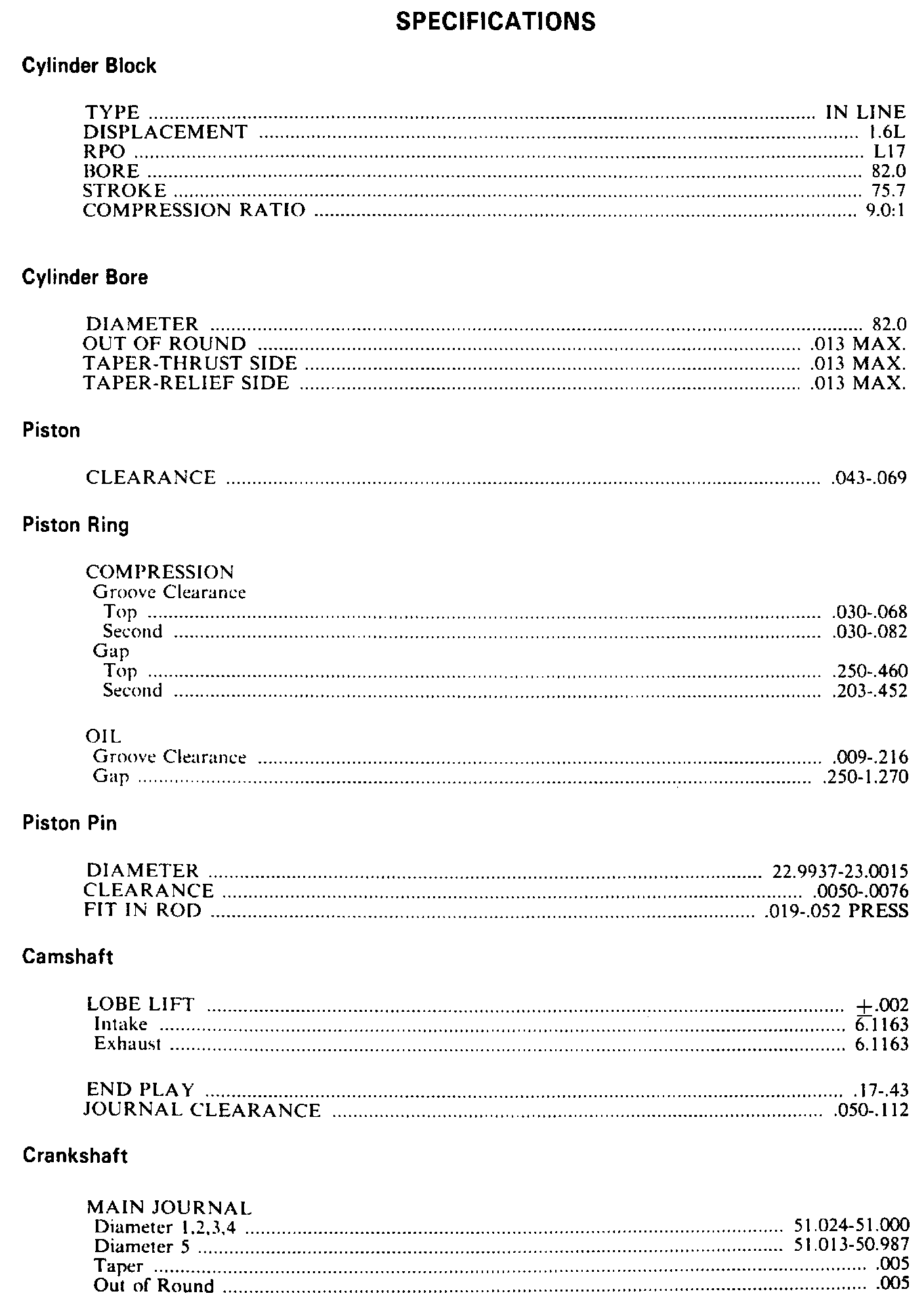 Engine Specifications: