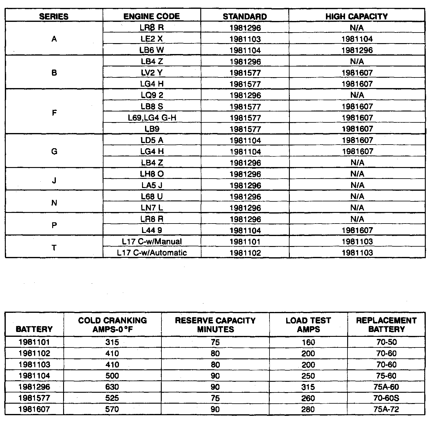 Starting and Charging: Specifications