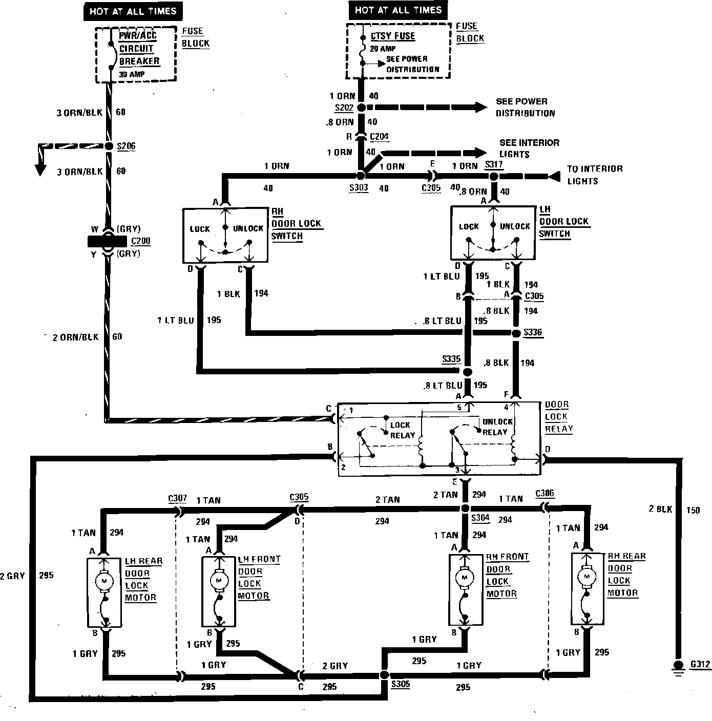 Power Door Lock Wiring Circuit (4 Door) Exc. STE: