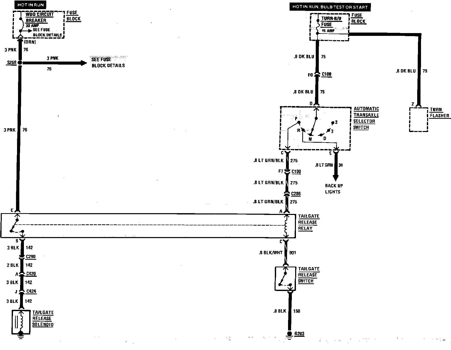 Tailgate Release Wiring Circuit. W/Automatic Transaxle: