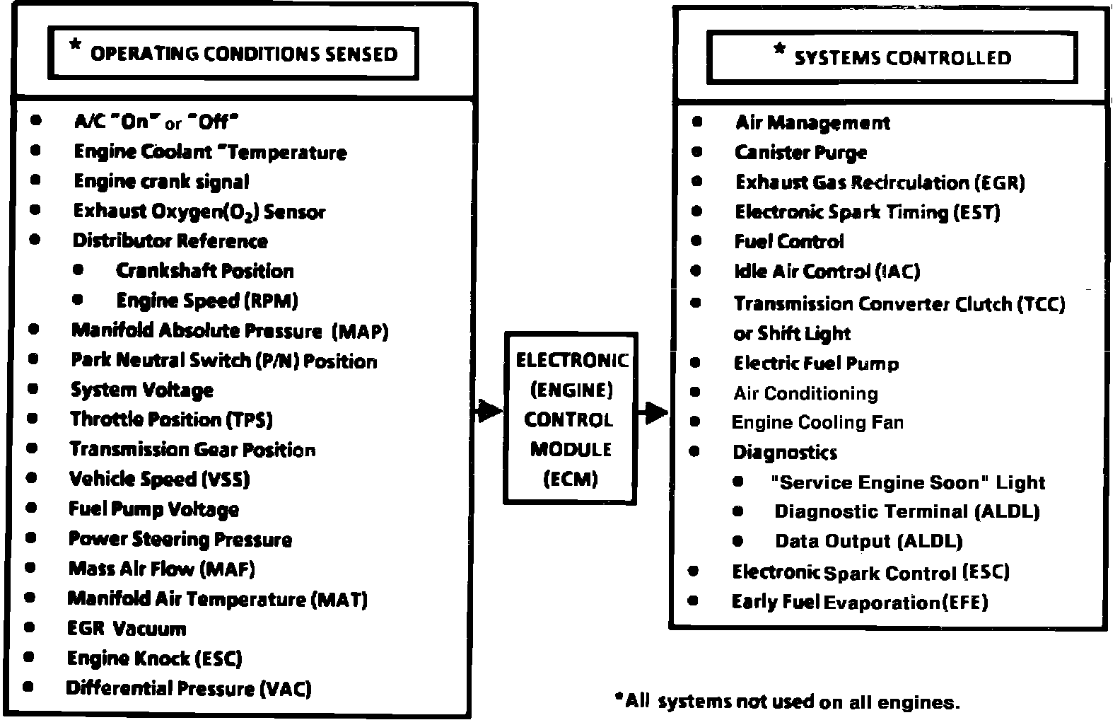 The ECM is capable of diagnosing faults with the various inputs and systems it controls. When the ECM detects a malfunction, a ``Check Engine'' or ``Service Engine Soon'' lamp in the instrument panel is illuminated, warning the driver to have the system checked.