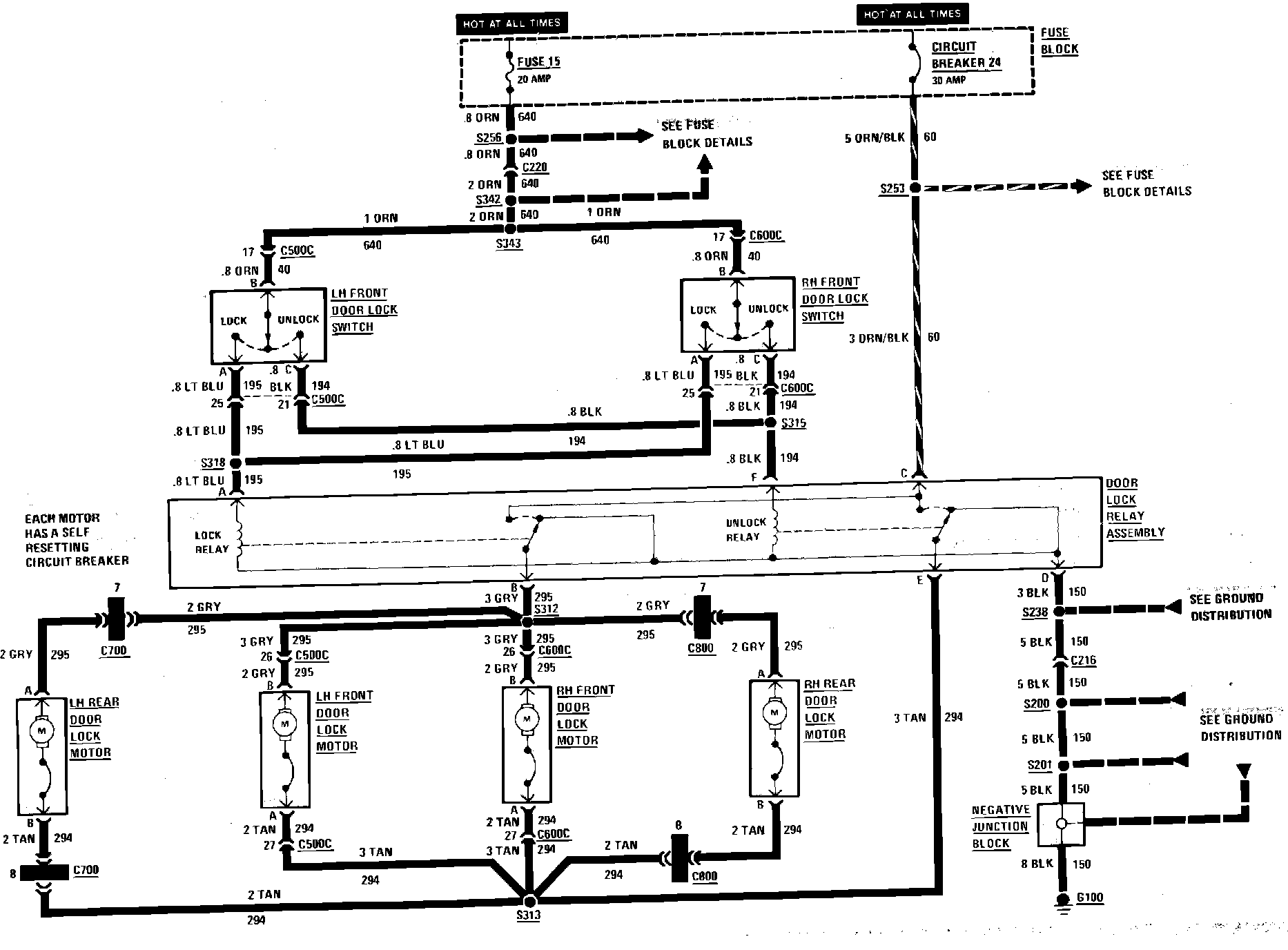 Power Door Locks Wiring Circuit: