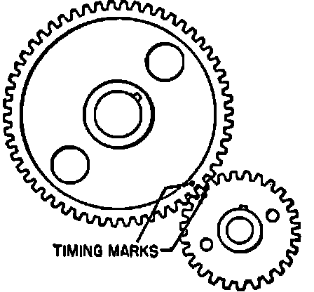 When installing timing gears, ensure marks on gears are properly aligned, Fig. 6.
