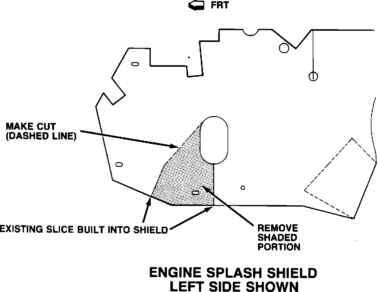 2. Rework (cut) left-hand splash shield on all subject vehicles as shown in Figure 2.