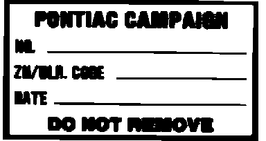 Each vehicle corrected in accordance with the instructions outlined in this Product Campaign Bulletin will require a "Campaign Identification Label." Each label provides a space to include the campaign number, the five digit dealer code of the dealer performing the campaign service, and the date the vehicle was campaigned. This information may be inserted with a typewriter or ballpoint pen. Install the label only on a clean, dry surface of the radiator baffle where it is readily visible. (Additional campaign labels are available on stationery order as Form 7901-709).
