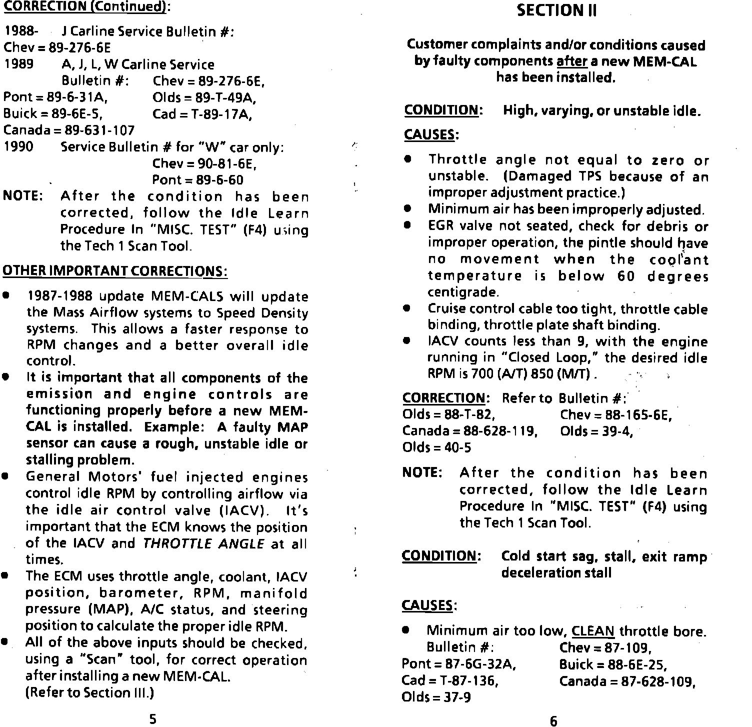 The Pocket Guide (s) attached to this bulletin should be provided to the driveability technicians at each dealership. They summarize all information into a "condition, cause, and correction" format specific to resolution and the "do's and don'ts" for each model year engine.