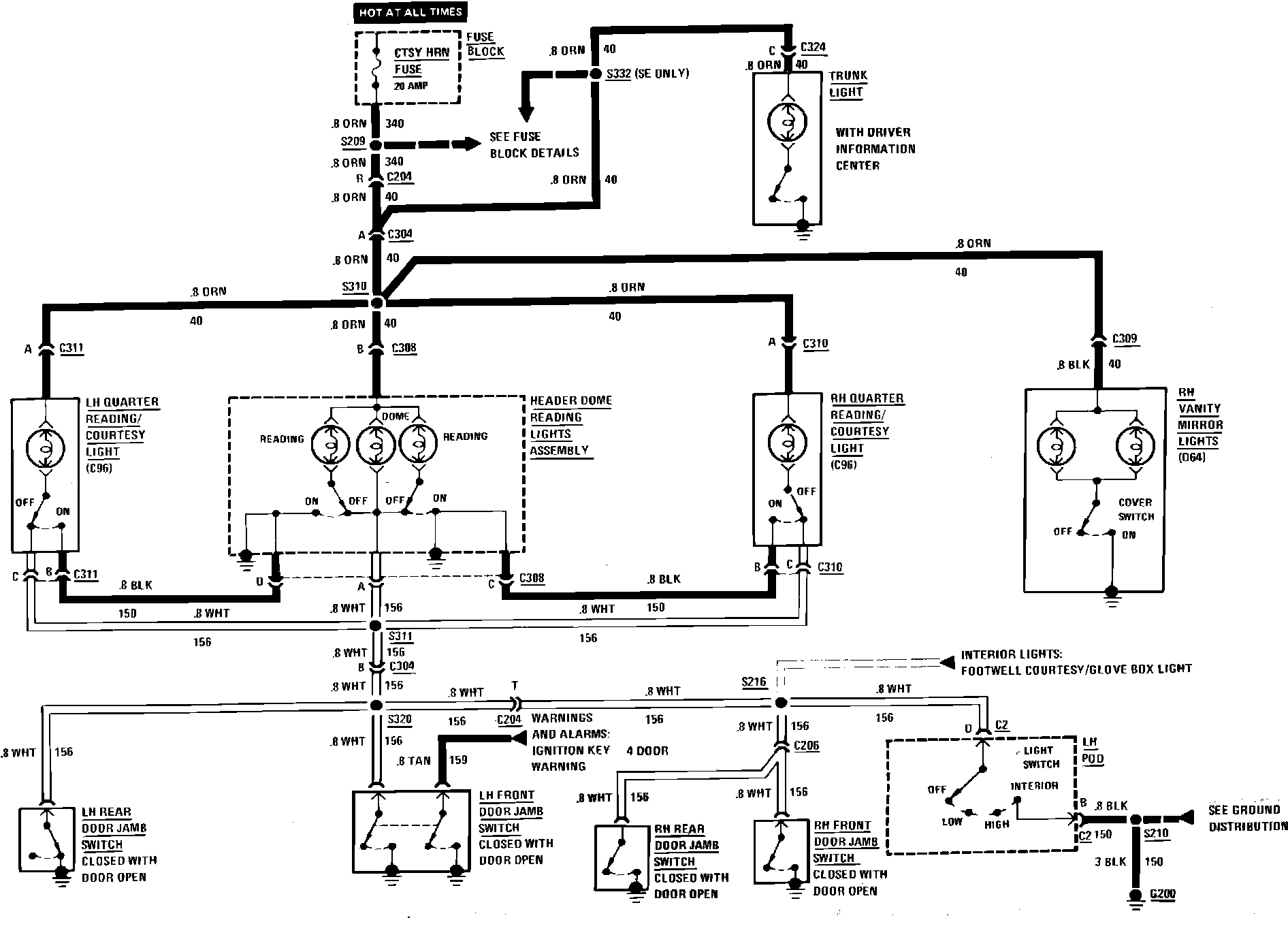 Interior Lights Wiring Circuit (Courtesy, Dome, Quarter Reading, Trunk & Vanity Mirror) W/Fog Lamps: