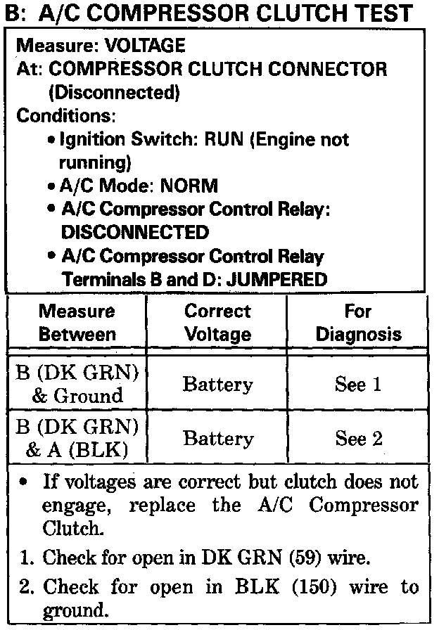 Test B: A/C Compressor Clutch Test
