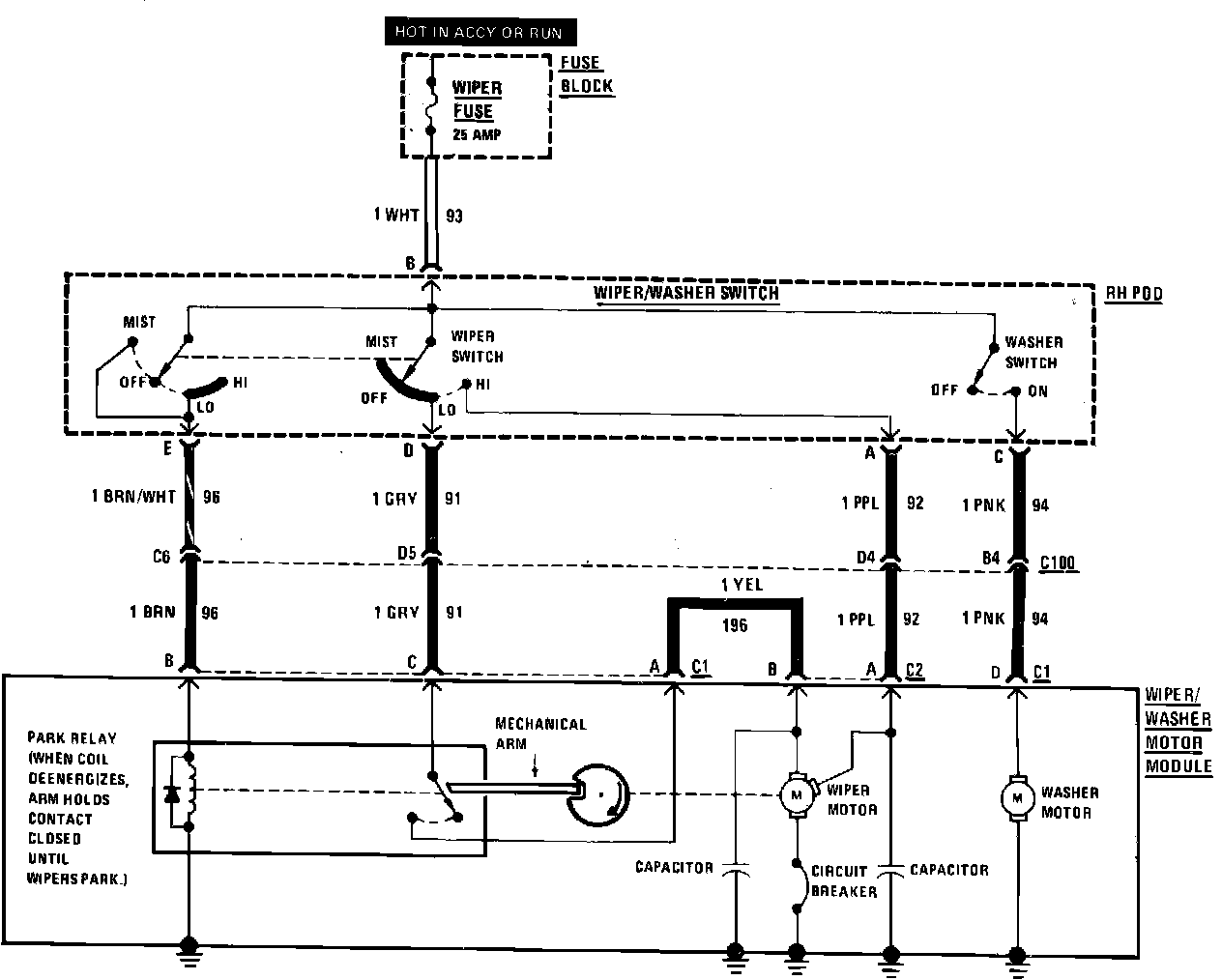 Windshield Wiper/Washer Wiring Circuit Less Pulse Wipers:
