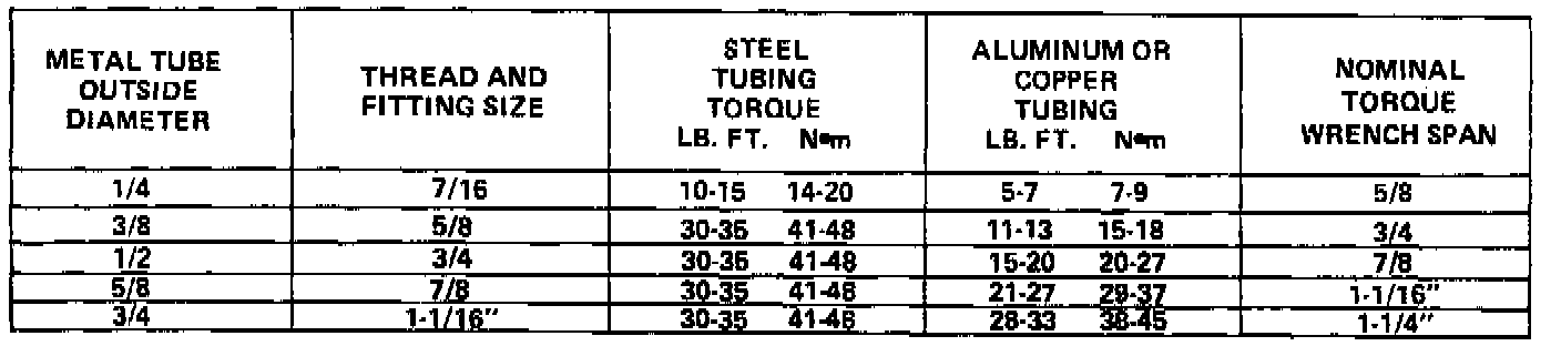 Refrigerant Line And Hose Connection Torque Chart: