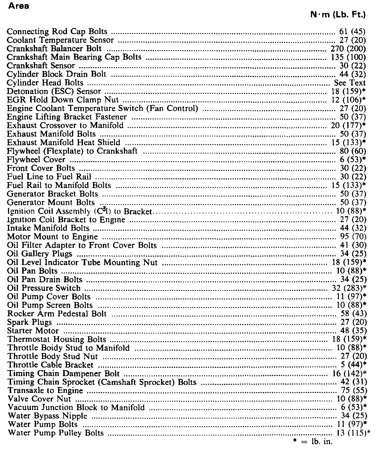 Torque Specifications: